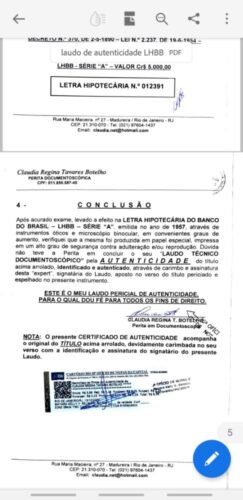 Letra hipotecaria Banco do Brasil 1957 com todos os cupons